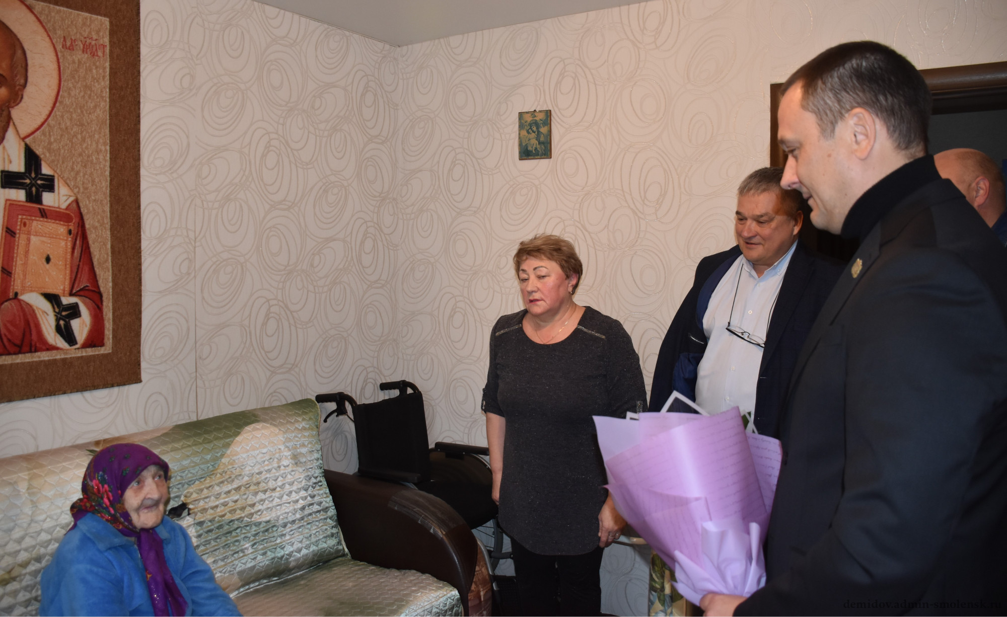 В этот особенный день её поздравили глава Демидовского округа Сергей Николаев, консультант отдела социальной защиты населения в Демидовском районе Олег Тычинин и председатель Титовщинского территориального комитета Александр Яскин. Они выразили глубокую благодарность Вере Емельяновне за её нелегкий труд, чуткость, мужество и стойкость, проявленные в сложные моменты жизни.