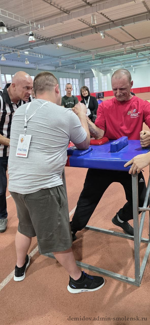 На минувшей неделе в Смоленске завершился финальный этап спортивного мероприятия среди участников СВО — «Кубок Защитников Отечества», приуроченный к 80-летию Победы в Великой Отечественной войне. Более 100 ветеранов, включая наших демидовцев, соревновались в таких дисциплинах, как пауэрлифтинг, армспорт, гиревой спорт, настольный теннис, пулевая стрельба и многих других.