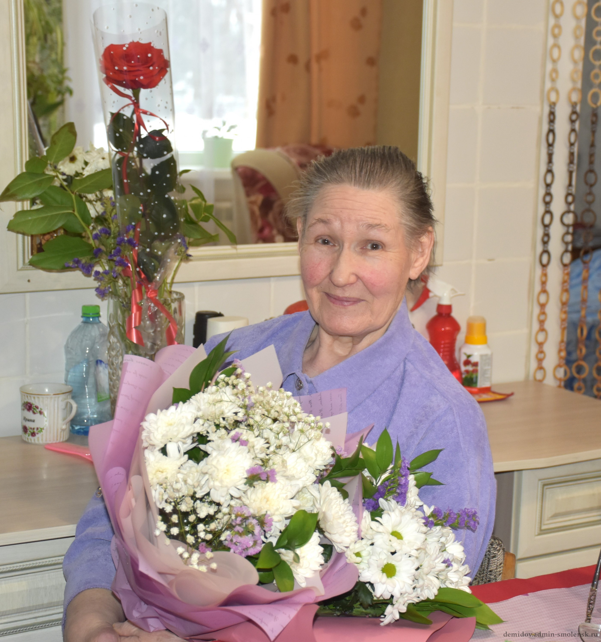 В этот памятный день Глава Демидовского округа Сергей Николаев посетил удивительную женщину — Ирину Ивановну Ефимову. Недавно ей вручили знак «Жителю блокадного Ленинграда» и удостоверение «Ветерана Великой Отечественной войны». Сергей Владимирович поздравил Ирину Ивановну, вручил ей цветы и памятный подарок - в знак глубокого уважения и благодарности.