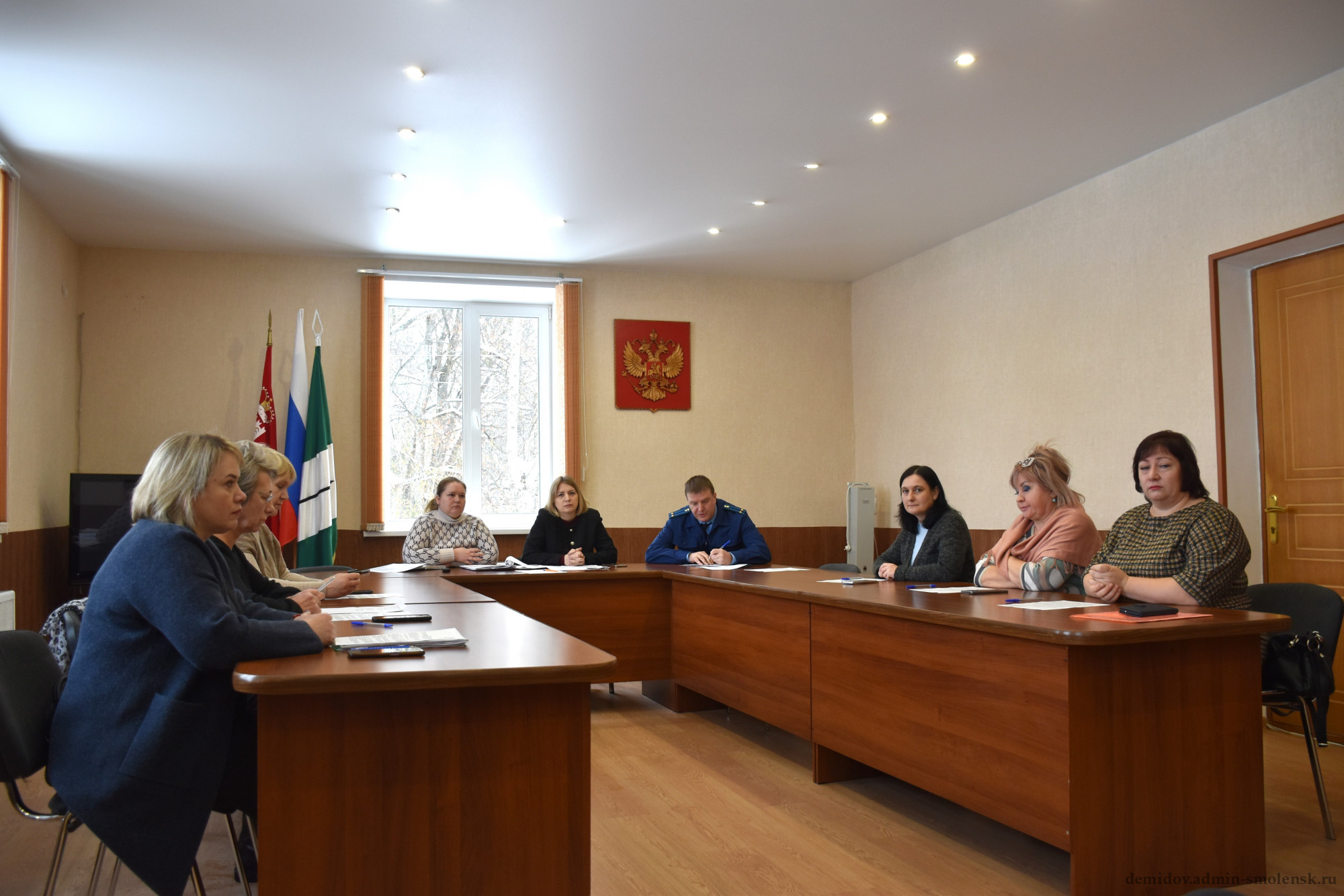 11 февраля под председательством и. о. начальника отдела по образованию Администрации муниципального образования «Демидовский муниципальный округ» Смоленской области, заместитель председателя Комиссии по делам несовершеннолетних и защите их прав в муниципальном образовании «Демидовский муниципальный округ» Смоленской области О.К. Карповской состоялось плановое заседание Комиссии по делам несовершеннолетних и защите их прав в муниципальном образовании «Демидовский муниципальный округ» Смоленской области (далее - Комиссия). На заседании Комиссии присутствовал А.Ю. Морозов, прокурор Демидовского района Смоленской области.
