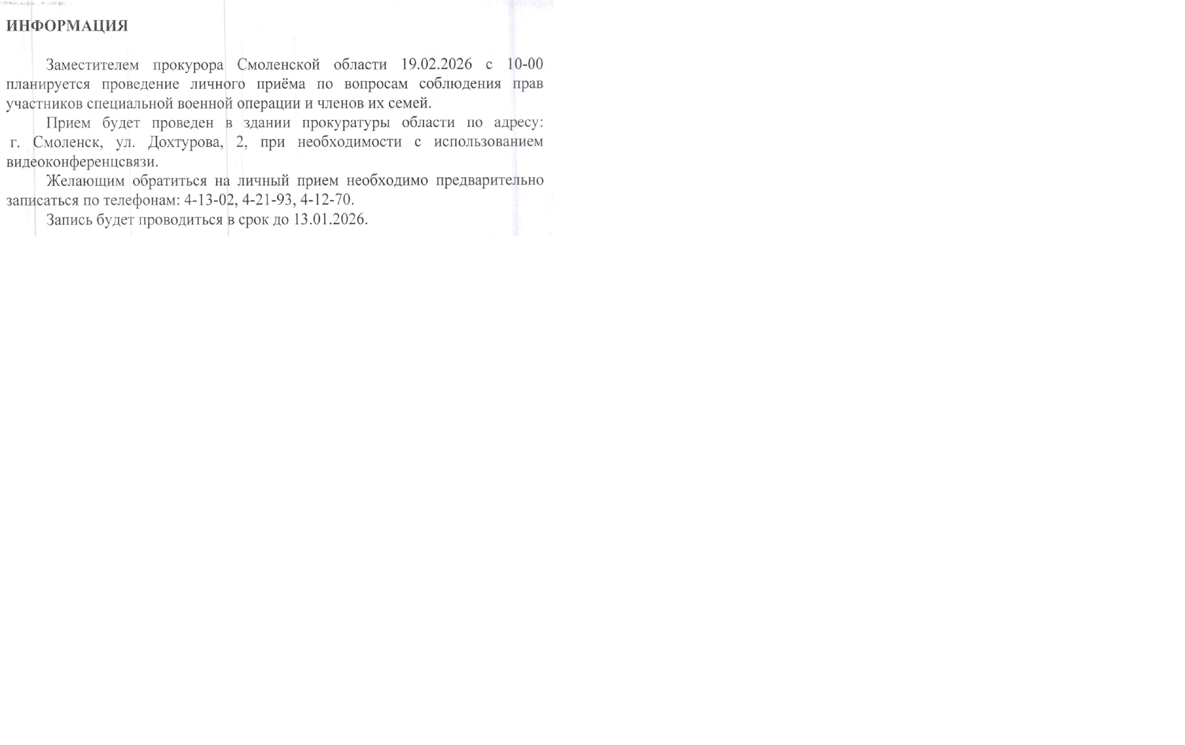 https://demidov.admin-smolensk.ru/administraciya-municipalnogo-obrazovaniya-demidovskij-rajon-smolenskoj-oblasti/news/provedenie-lichnogo-priema-po-voprosam-soblyudeniya-prav-uchastnikov-svo/