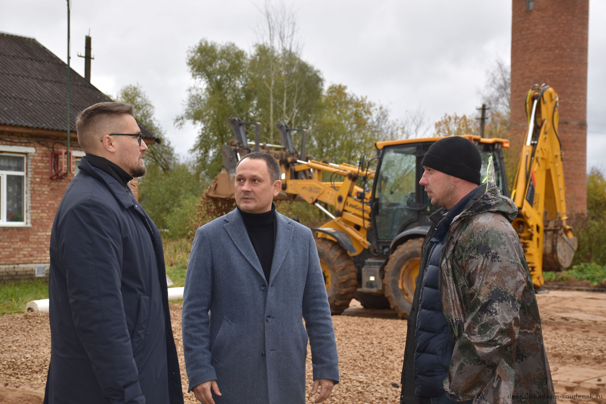 Глава Демидовского округа Сергей Николаев совместно с сенатором Российской Федерации Русланом Смашнёвым посетили площадку и пообщались с руководителем подрядной организации.