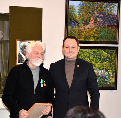 Глава Демидовского округа Сергей Николаев принял участие в открытии выставки и вручил Благодарность Юрию Геннадьевичу за его вклад в культурную жизнь округа, формирование любви к Родине и высоких духовных и нравственных ценностей.
