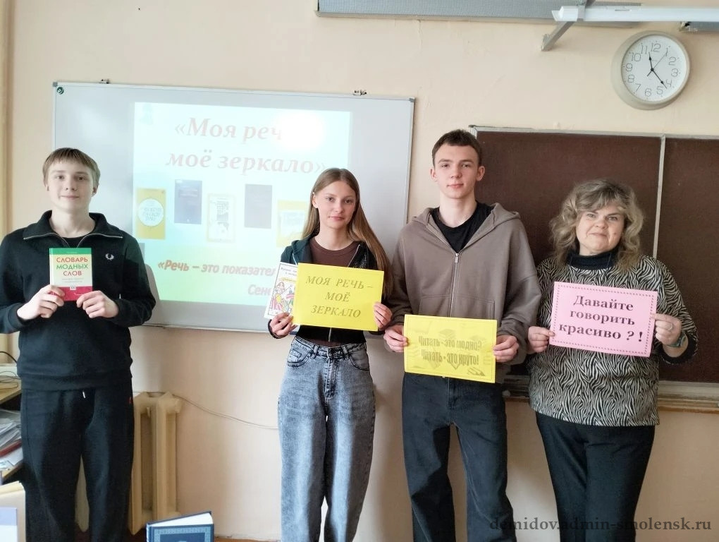 В рамках реализации федеральной программы «Пушкинская карта» 24 марта библиограф Демидовской центральной библиотеки Никитина Е.Е. провела для учащихся 9 класса СШ №1 беседу «Моя речь - мое зеркало».