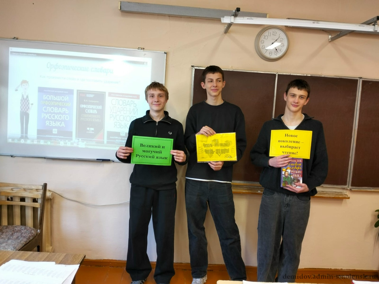 В рамках реализации федеральной программы «Пушкинская карта» 20 ноября библиограф Демидовской центральной библиотеки Никитинак Е.Е. провела для учащихся 9 класса СШ №1 библиотечный урок «Что расскажут словари».