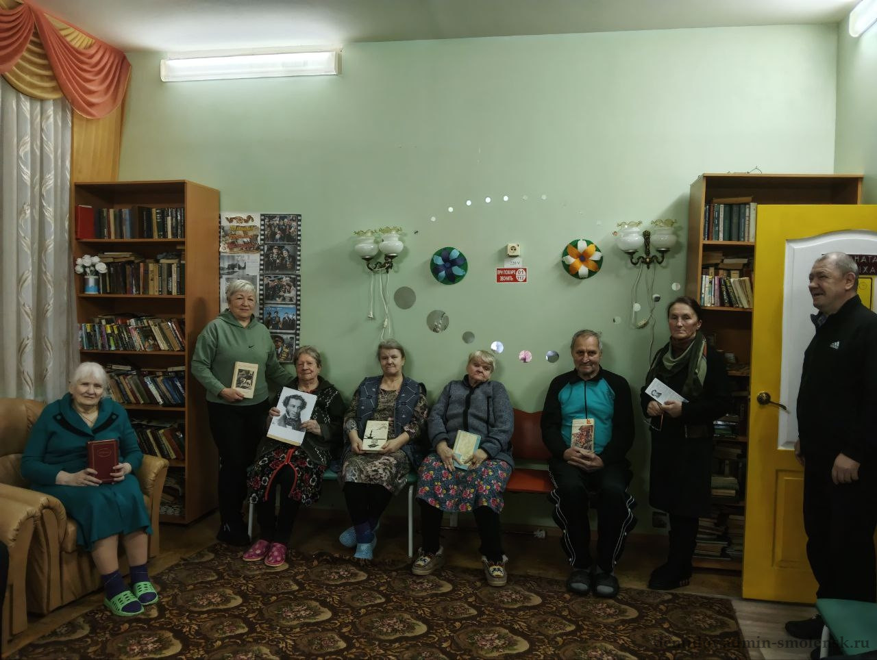 В День памяти Александра Сергеевича Пушкина сотрудники Холмовской библиотеки и СДК провели для проживающих в Холмовском доме- интернате литературный вечер «Этот великий Пушкин», посвящённый великому поэту.