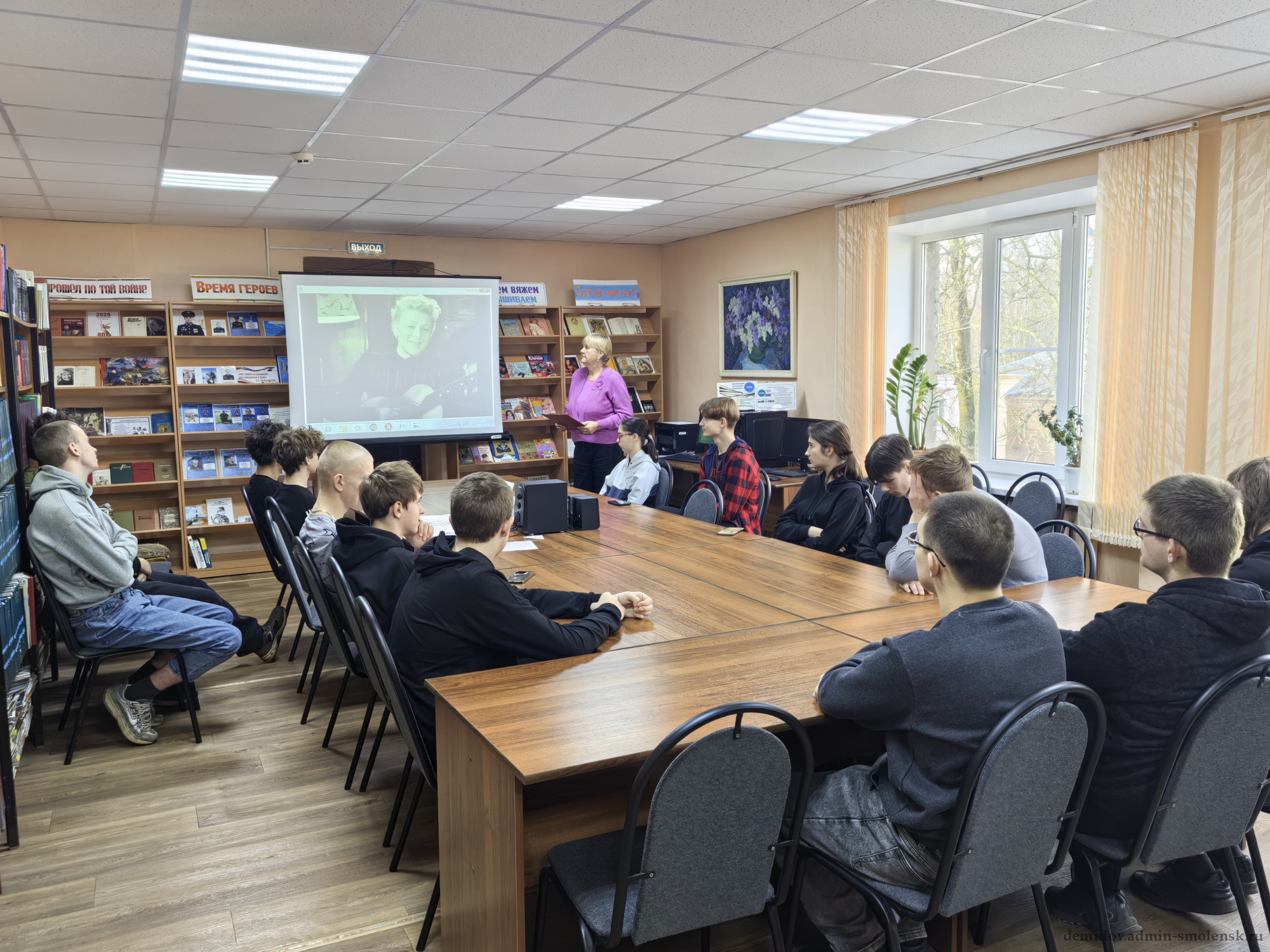 18 ноября в Демидовской центральной библиотеке для студентов СОГБ ПОУ «Техникум отраслевых технологий» прошел литературный час «Как я выжил, будем знать только мы с тобой», посвященный 110-летию со дня рождения К. М. Симонова.
