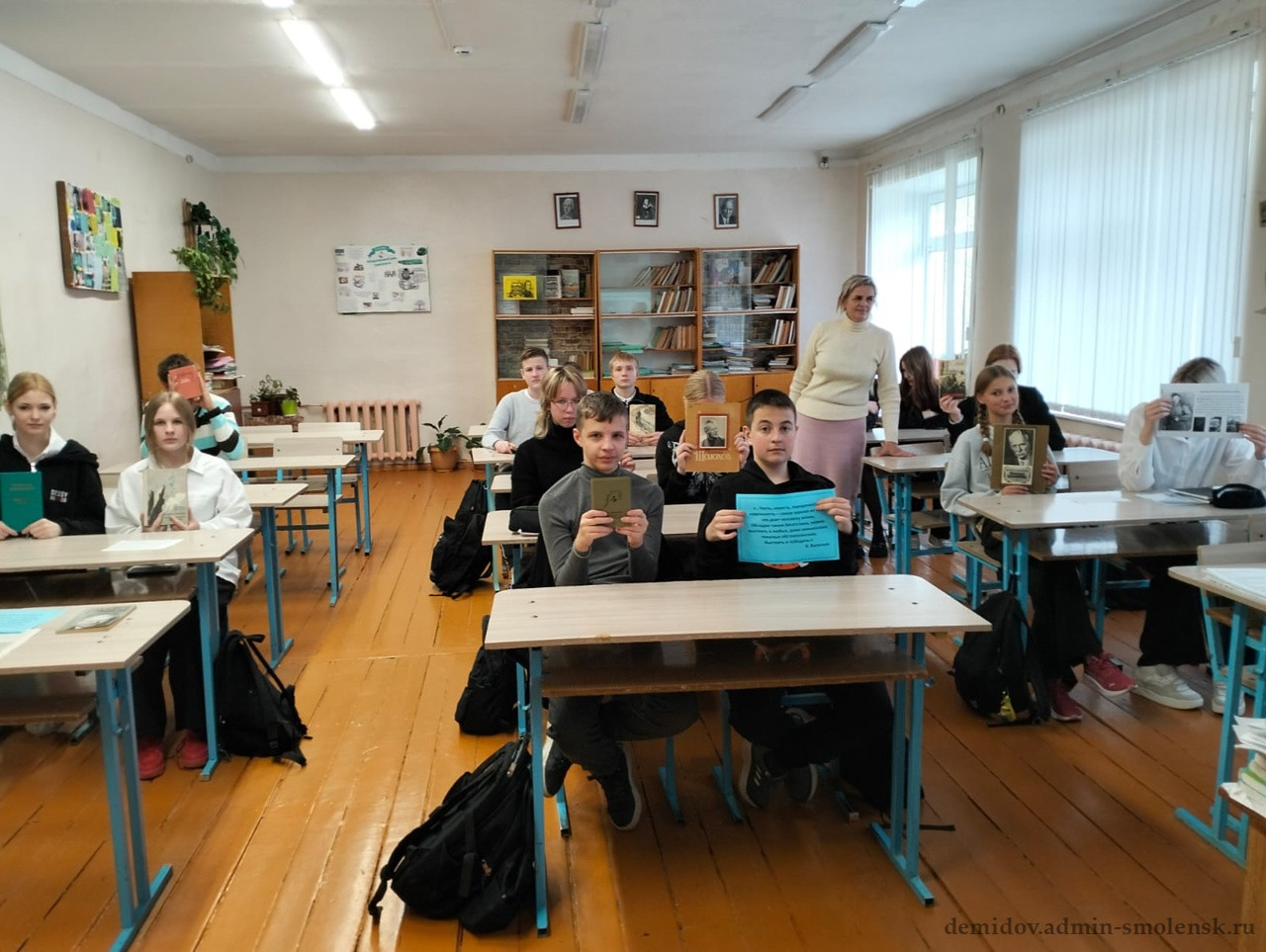 13 октября библиотекарь Демидовской центральной библиотеки Никитина Е.Е. провела для учащихся 9 класса МБОУ СШ №1 литературный час «Судьба человека: листая страницы книги».