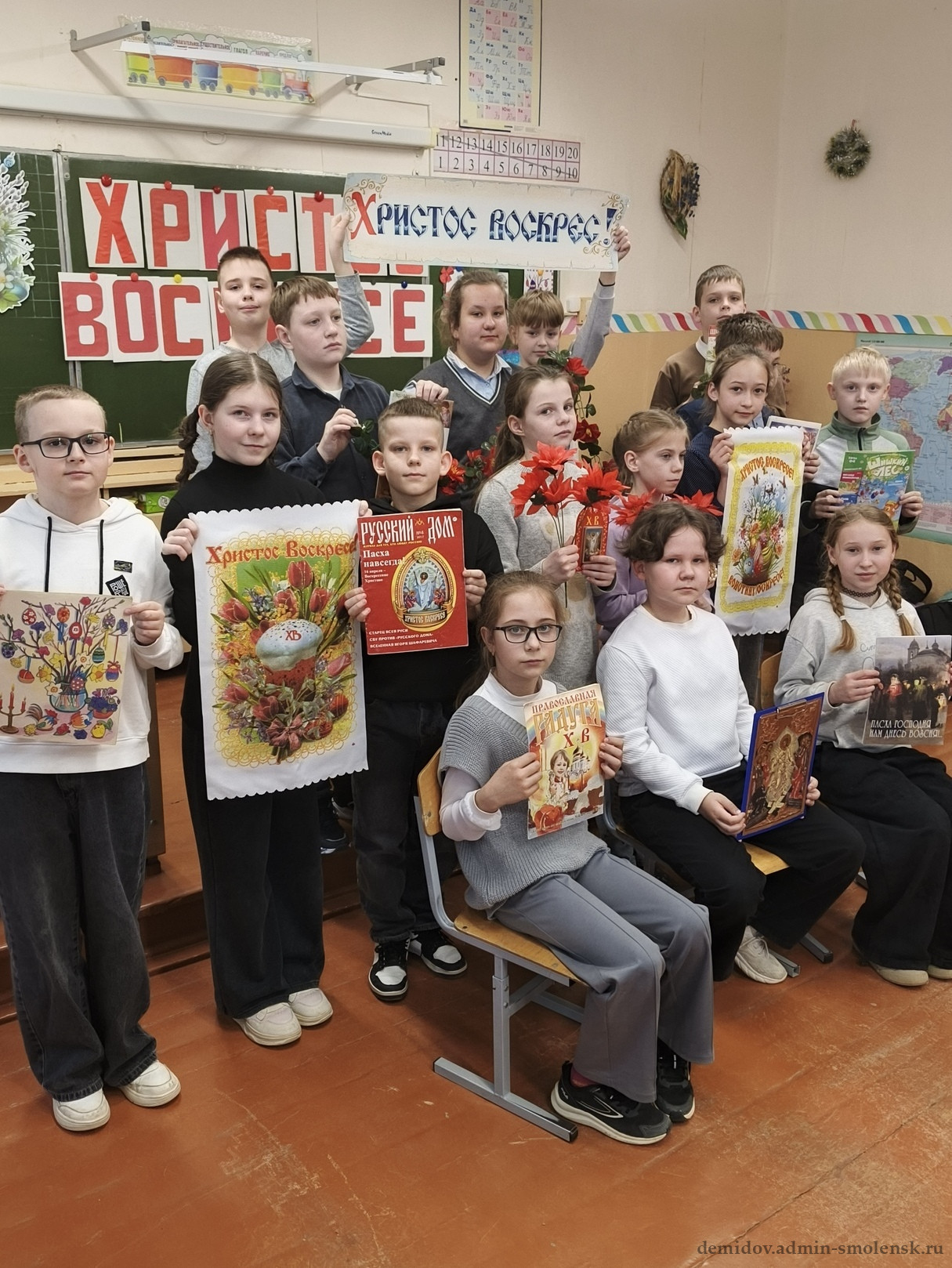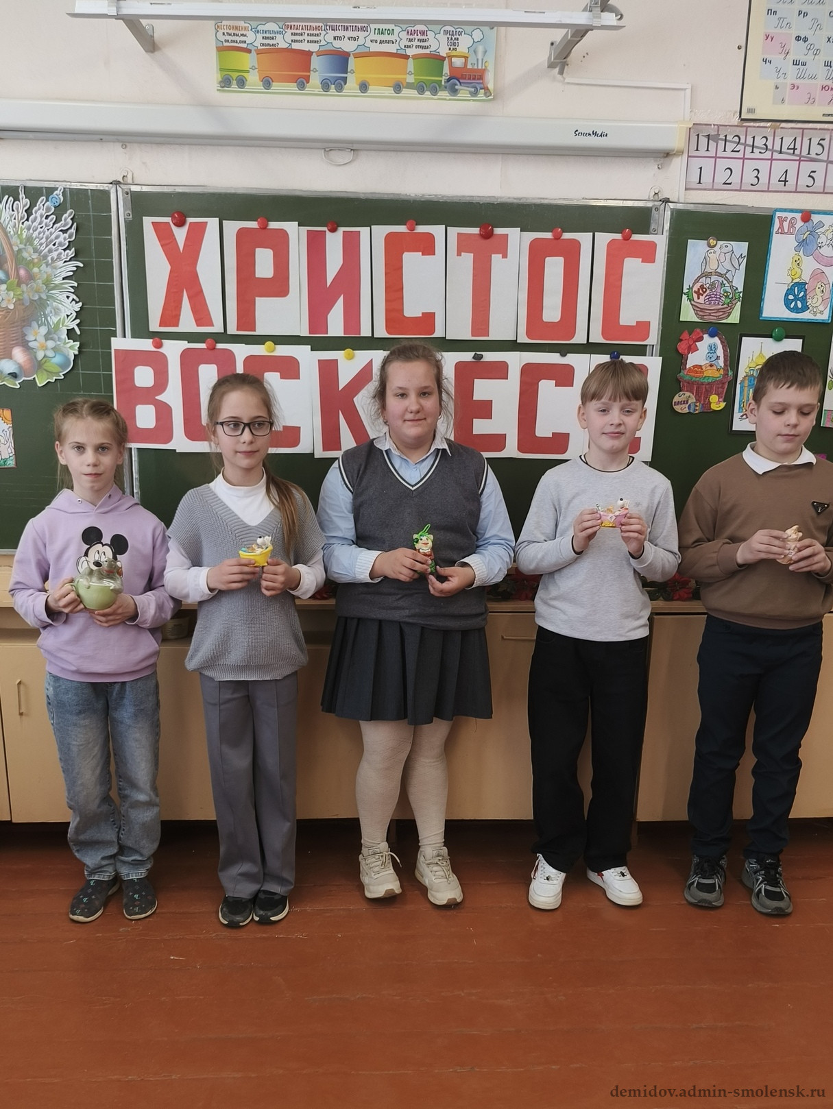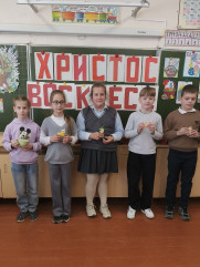 13 апреля обучающиеся начальных классов школы № 1 стали участниками православного праздника «Пасхальные вести», который организовала сотрудник Кафедры православной литературы Демидовской центральной детской библиотеки.
