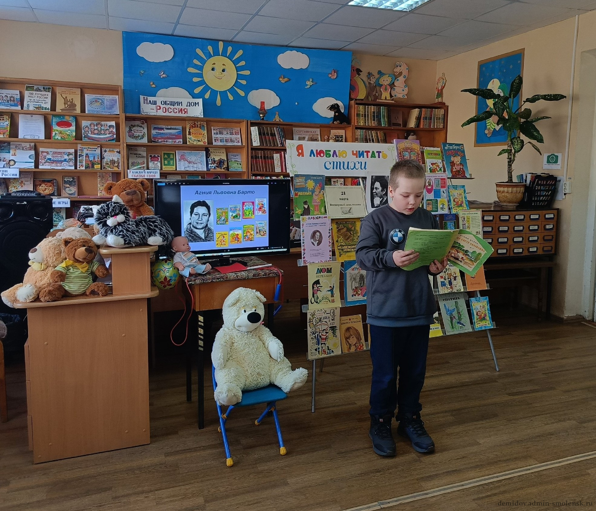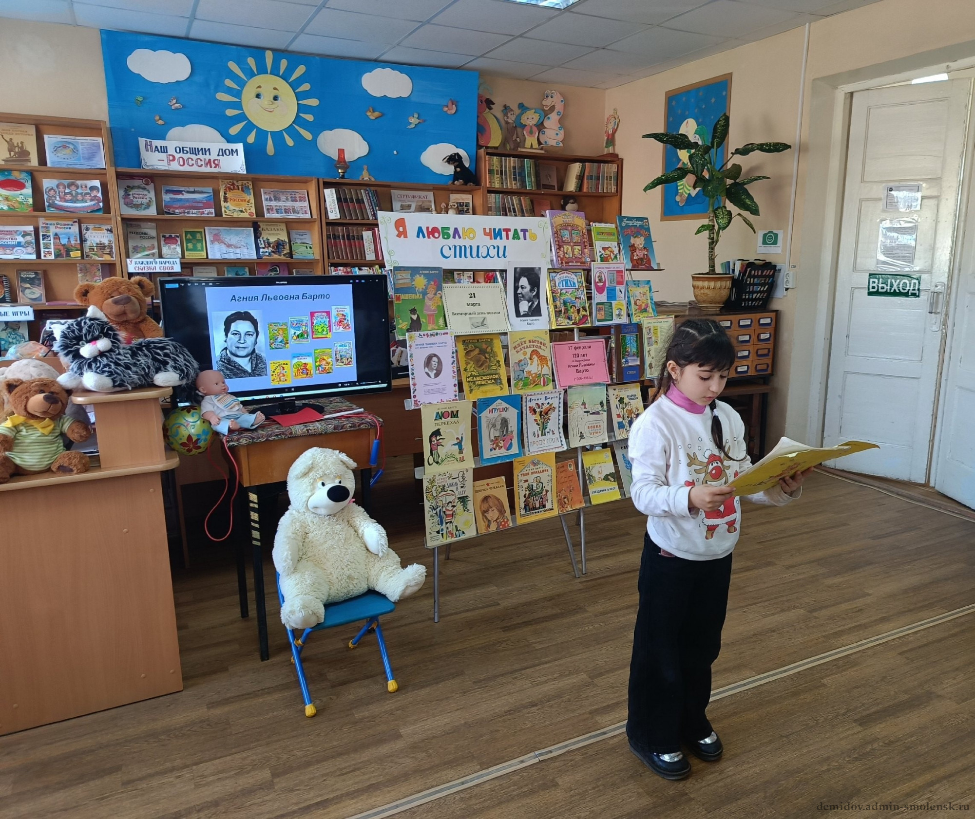 19 марта в Демидовской центральной детской библиотеке в рамках акции «Областной день поэзии «Добрая лира», посвященной 120-летию со дня рождения А. Л. Барто, для учеников 2 «А» класса школы № 2 прошел час веселого чтения «Поэзия на все времена».