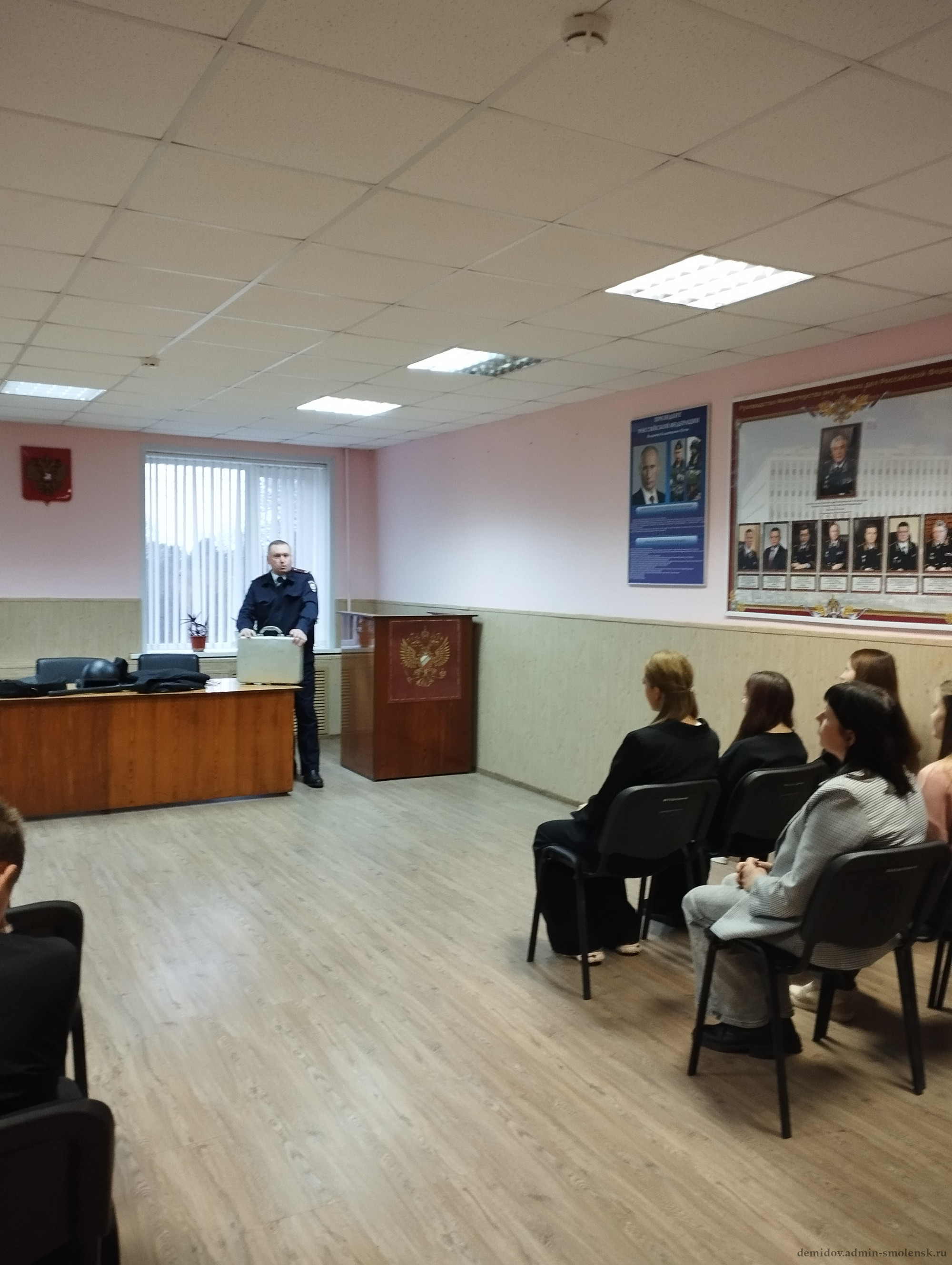 В рамках месячника правовых знаний сотрудником Демидовской центральной библиотеки Штефан С.Н. была организована тематическая экскурсия «Полицейские будни» в отделение полиции по Демидовскому муниципальному округу для обучающихся 10 класса средней школы №2. Началась экскурсия со знакомства с работой ключевого подразделения полиции – дежурной части. Именно здесь осуществляется круглосуточная организация и контроль за оперативной обстановкой на обслуживаемой территории.