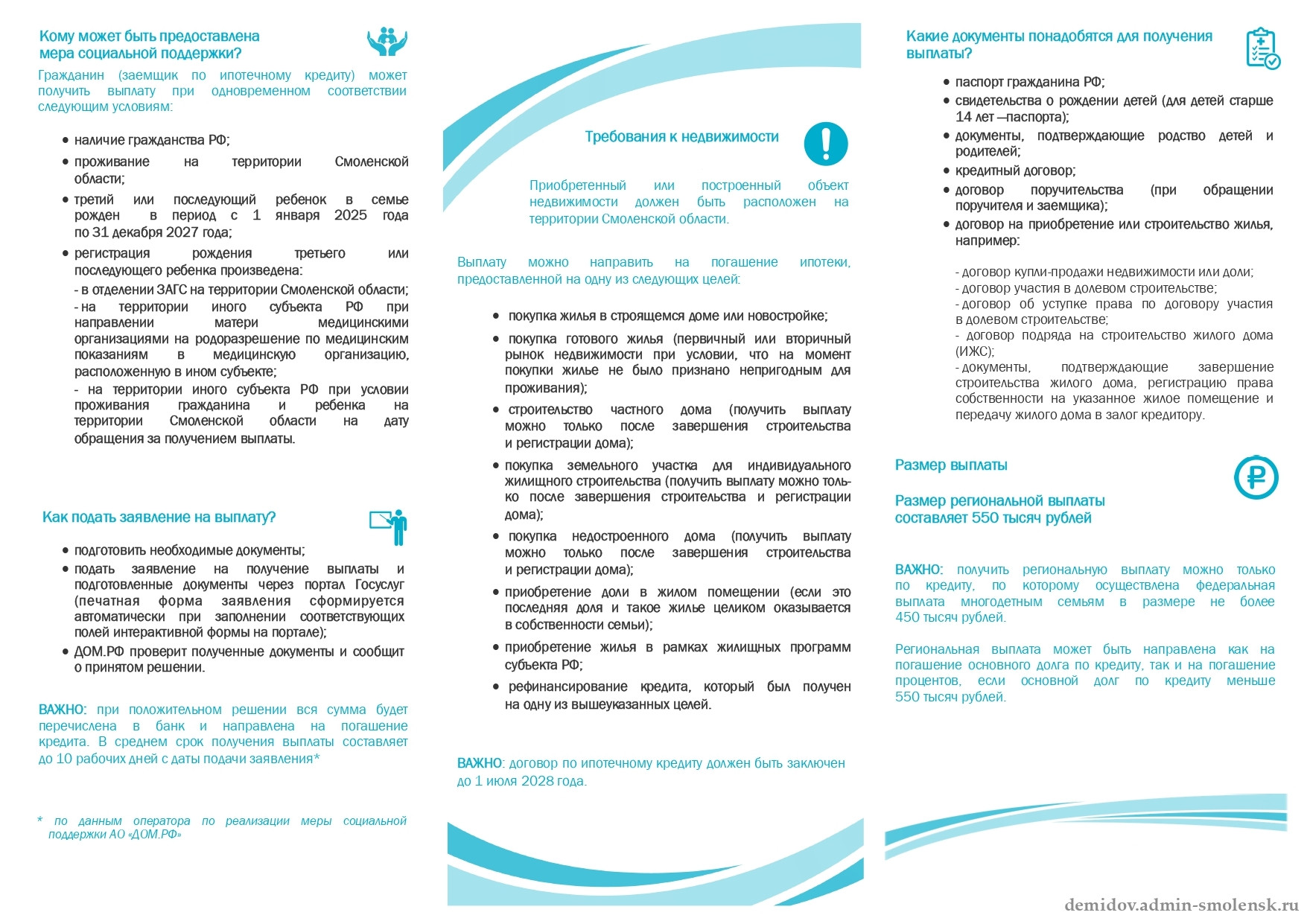 в отношении семей, в которых после 1 января 2025 года родился третий ребенок или последующие дети в соответствии с областным законом от 27.02.2025 № 26-з «О мере социальной поддержки семей, имеющих детей, в части погашения обязательств по ипотечным жилищным кредитам (займам) на территории Смоленской области»;
