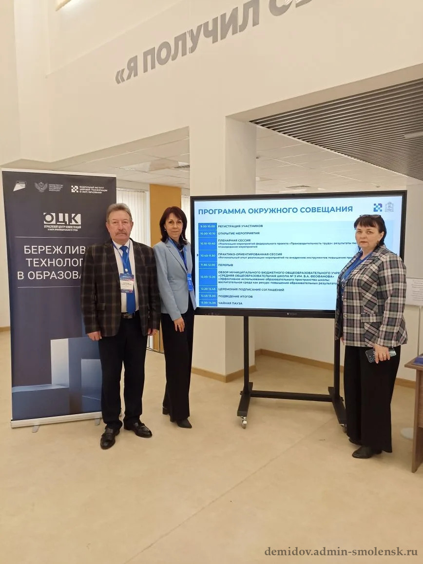 Демидовский муниципальный округ представлял директор МБОУ СШ № 2 г. Демидова, Калинин Владимир Михайлович. В ходе совещания было подписано трехстороннее соглашение о сотрудничестве по внедрению «коробочного» решения.