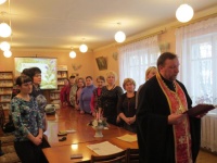 Встреча началась с молебного пения перед иконой святой мученицы Татианы, которое совершил благочинный Демидовского округа протоиерей Александр Миронов. Все усердно внимали словам молитвы ко святой страстотерпице. По окончании молебна отец благочинный рассказал историю святой мученицы Татианы.