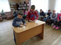 Продолжением мероприятия стала находка цветика-семицветика, который давал детям самые разные задания: определи животного, отгадай ребус, расшифруй послание. Веселые, смешные конкурсы: преодолей болото, собери припасы для белки, собери цветок, завяжи узел подарили нашим читателям много положительных эмоций. Игры "Цапля", "Паутина", "Рыбак" стали самыми интересными и запоминающими. В зале часто слышался смех, а количество поднятых рук в ответ на вопросы было наградой библиотекарю за интересный материал.